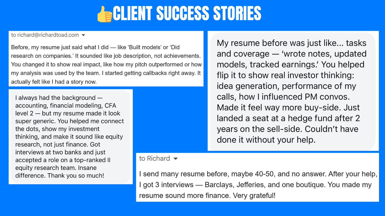 I offer a two-step resume review service. First, I’ll provide detailed feedback for you to implement. Once revisions are made (to be completed within two weeks of receiving initial feedback), I’ll conduct a final review to ensure your resume is polished.